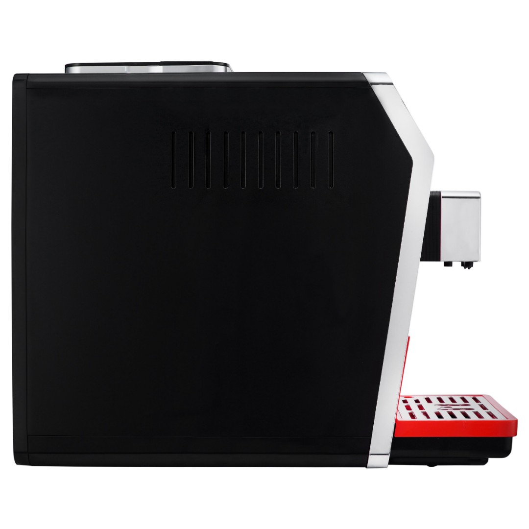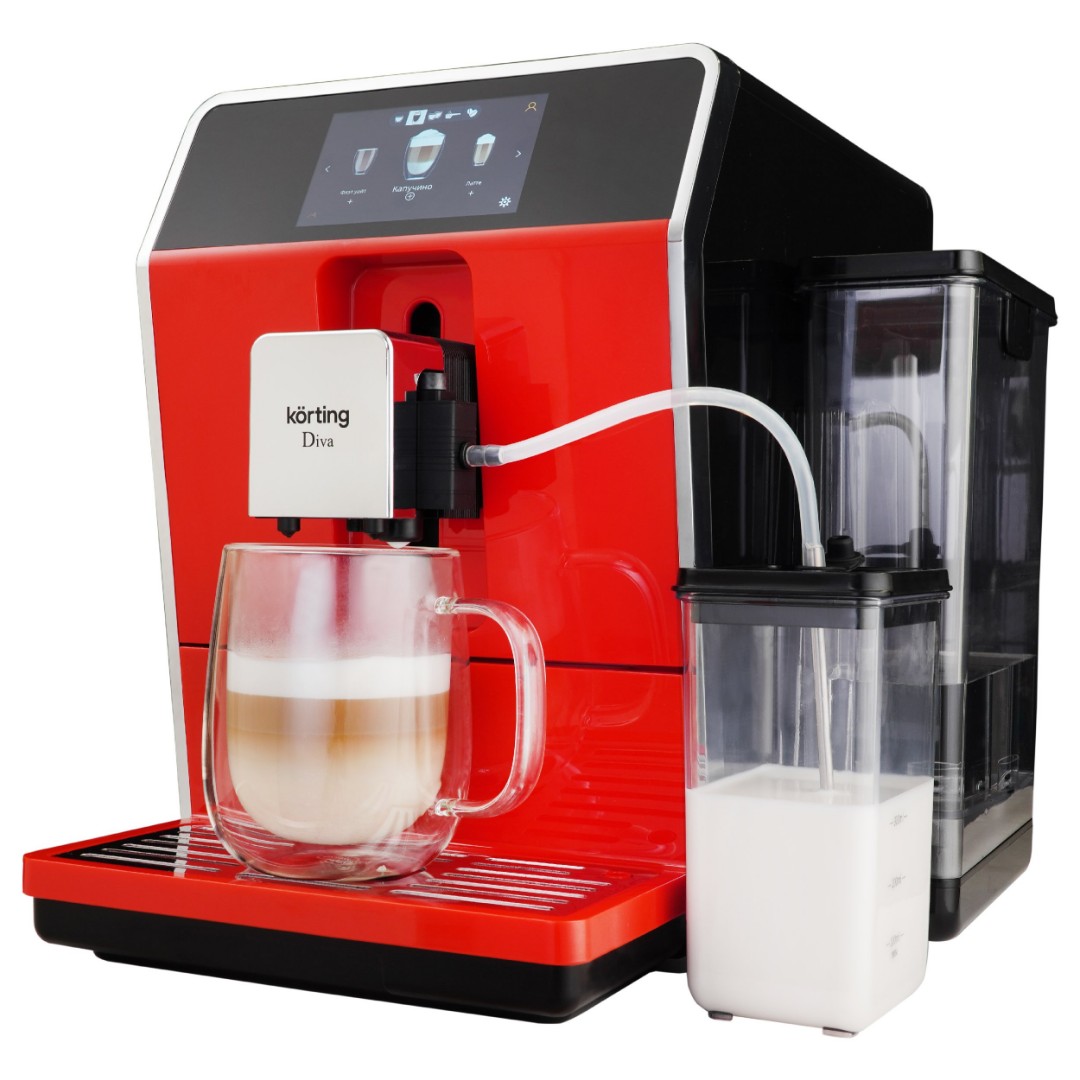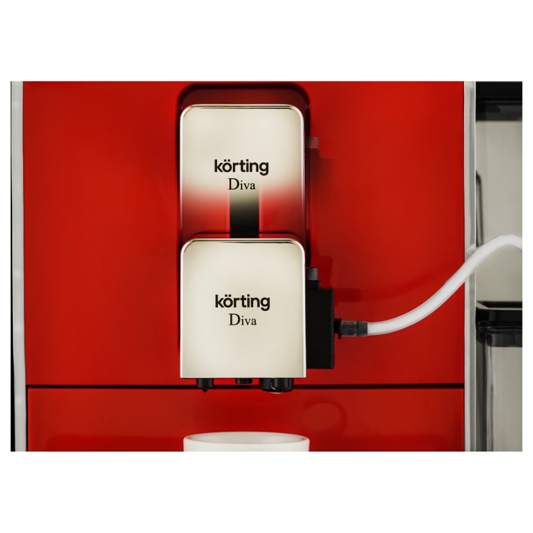 Кофемашина KACM 2005 Diva, выполненная в красном цвете, имеет 35 автопрограмм для приготовления напитков. Кроме того, она предлагает свыше двухсот индивидуальных настроек с возможностью их сохранения. Выбор напитка и настройки, включая подбор объема кофе и молочной пены, осуществляется на цветном сенсорном дисплее. Автоматический капучинатор позволяет готовить напитки с молоком нажатием одной кнопки. Он работает в паре с независимым контейнером для молока обёъемом 500 мл, который можно хранить в холодильнике. Разборная конструкция значительно упрощает обслуживание и продлевает срок службы прибора. Для дополнительного удобства кофемашиной можно управлять как при помощи сенсорного дисплея, так и при помощи дискового джойстика. Регулировка высоты дозатора для чашки также производится вручную, что позволяет готовить напитки в посуде с разными размерами.
