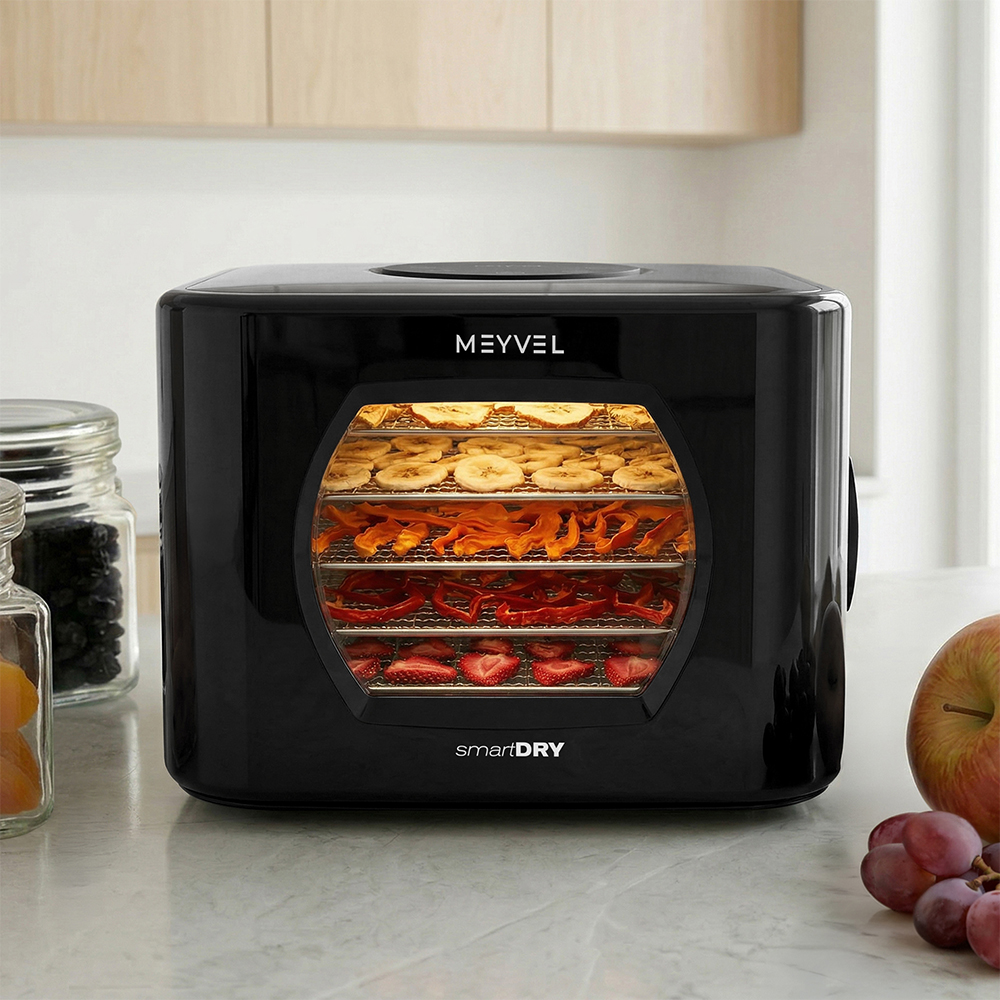 Meyvel MDH5-2P (Чёрный) (Black) подходит тем, кто делает домашние заготовки, придерживается правильного питания или просто любит натуральные снеки без добавок. С его помощью можно готовить фруктовые чипсы, овощные смеси для супов, сушеные ягоды для выпечки, травяные сборы и мясные закуски. Один прибор закрывает множество задач и помогает по-новому взглянуть на привычные продукты.