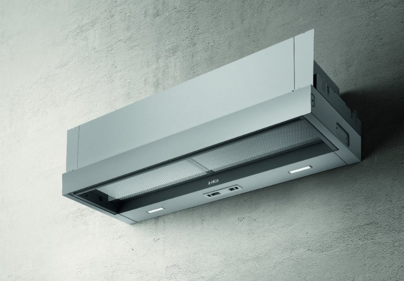 Абсолютно уникальный продукт на рынке, только компания Elica предлагает полностью встраиваемую вытяжку в компактных габаритах, имеющую выдвижной стеклянный козырёк, который выполняет защитную функцию для мебели, автоматически включает работу мотора при выдвижении, а также служит для направления испарений в зону забора воздуха у вытяжки.