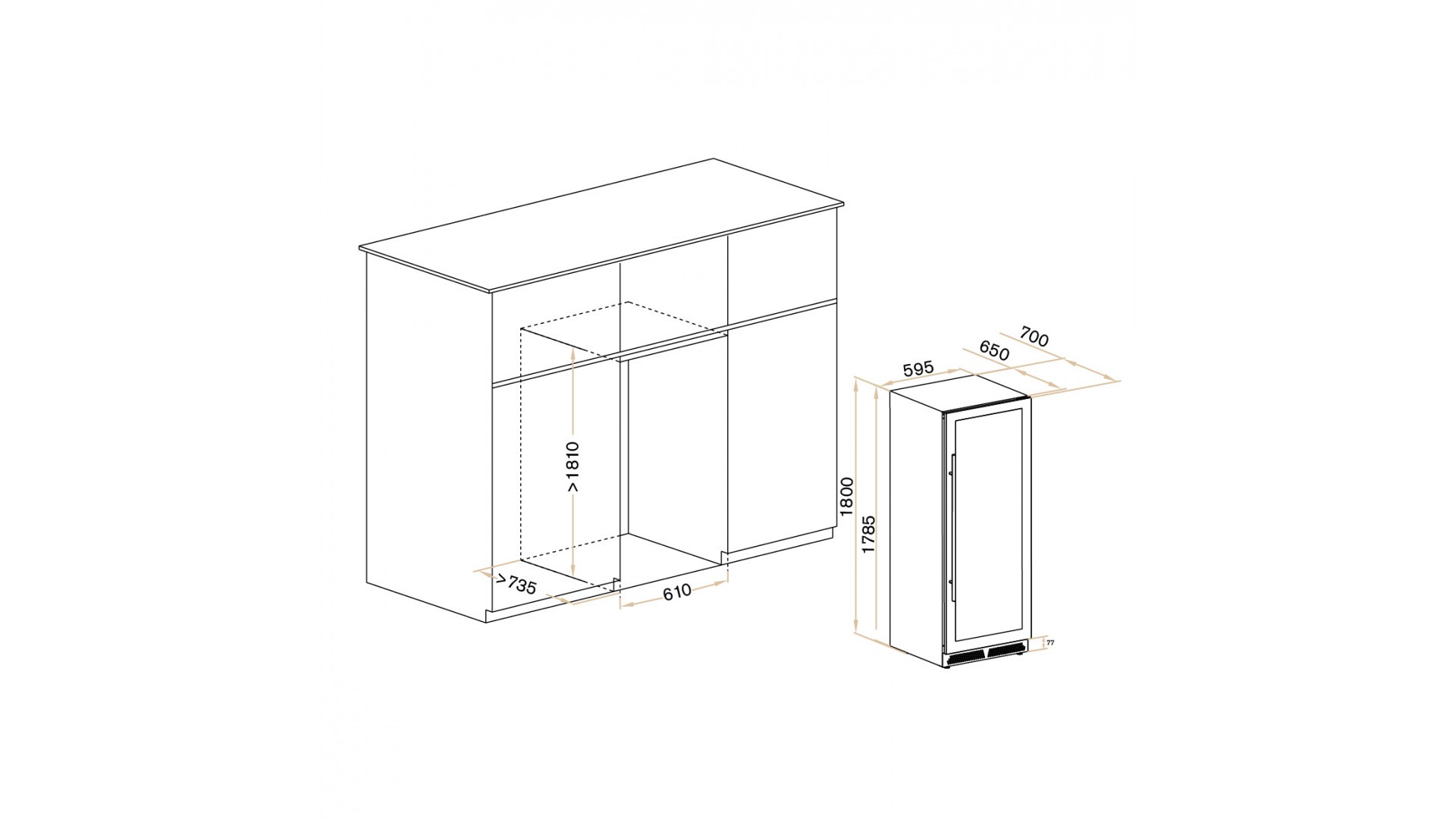Винный шкаф предназначен для профессионального и длительного хранения различных сортов вин (до 174 бутылок типа Бордо). Он так же оснащен дверью с защитой от ультрафиолетовых лучей и поддерживает влажность в диапазоне 60-80%, как в настоящем винном погребе.